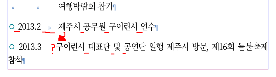 첨부파일에 올린것처럼 '숨겨진 문자 숨기기' 표시가 나와야 하는게 정상인걸로 알고 있는데